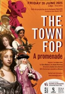 The Town Fop (1677), est une pièce écrite par Aphra Ben. C’est une comédie douce-amère tissée de quiproquo, divorces, amours interdites et angoisses sur la masculinité. Adaptée par les étudiant•es, ce spectacle musico théâtral soutenu par la Faculté Société et Humanité de l’Université Paris Cité vient clôturer le colloque international « Aphra Ben on the Move » consacré à cette pionnière, première femme à avoir gagné sa vie de sa plume en Angleterre, organisé les 18, 19 et 20 juin prochain par Sorbonne Université, Sorbonne Nouvelle et l’Université Paris Cité.